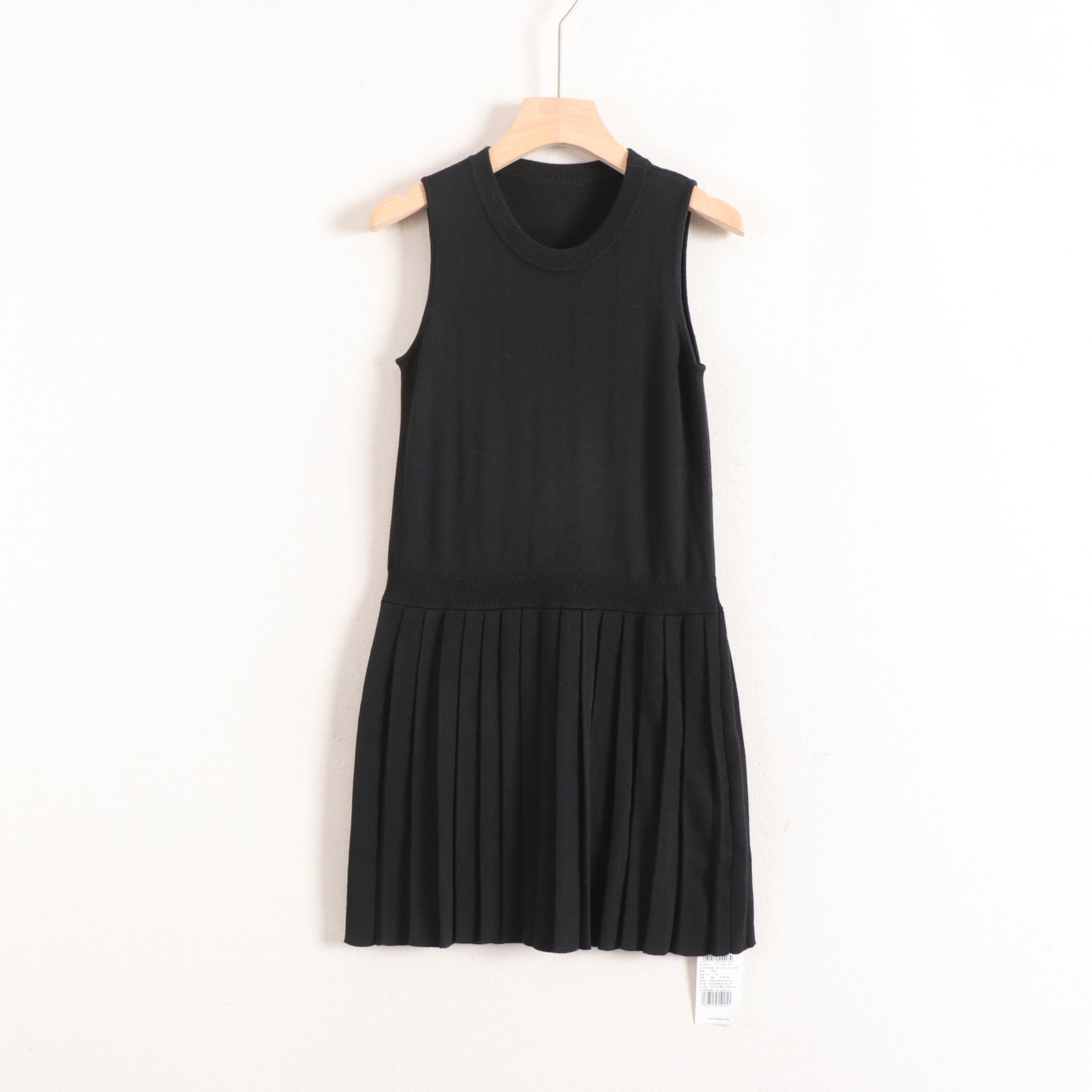 加系列极简学院风高弹修身百搭圆领百褶无袖针织连衣裙26春夏装新