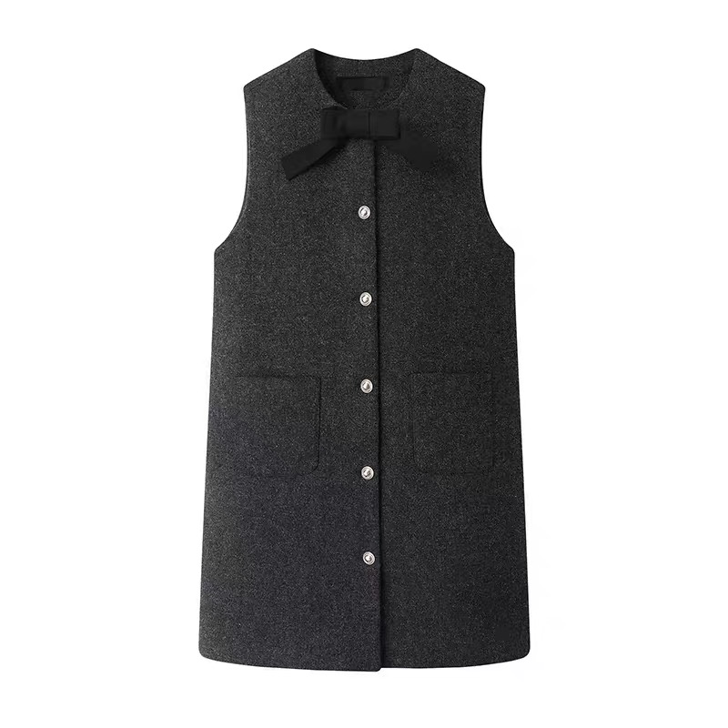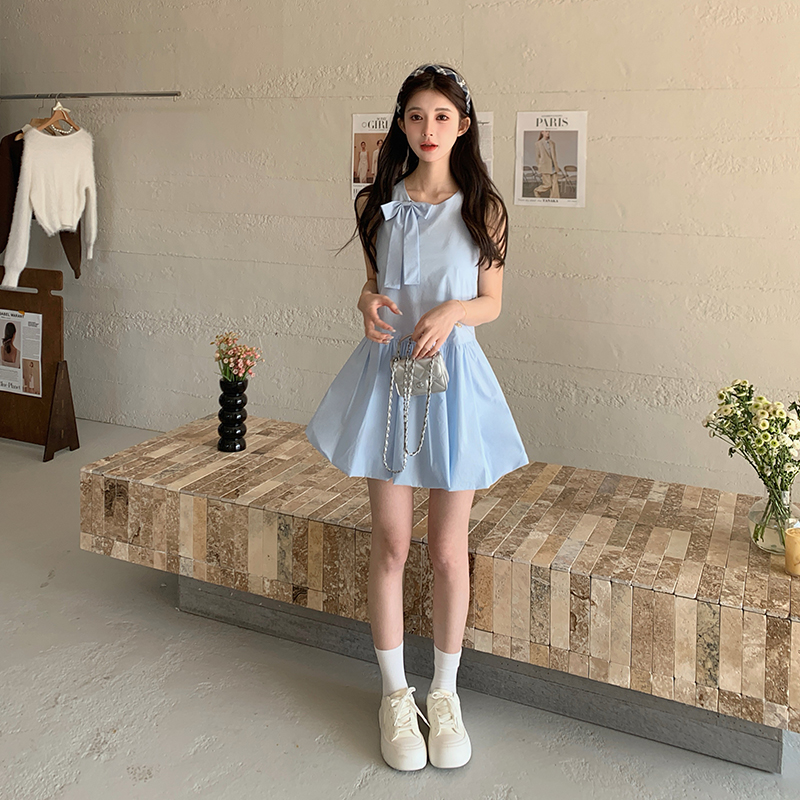 A632诗系の2025新款学院风蝴蝶结圆领无袖小香风加厚背心连衣裙