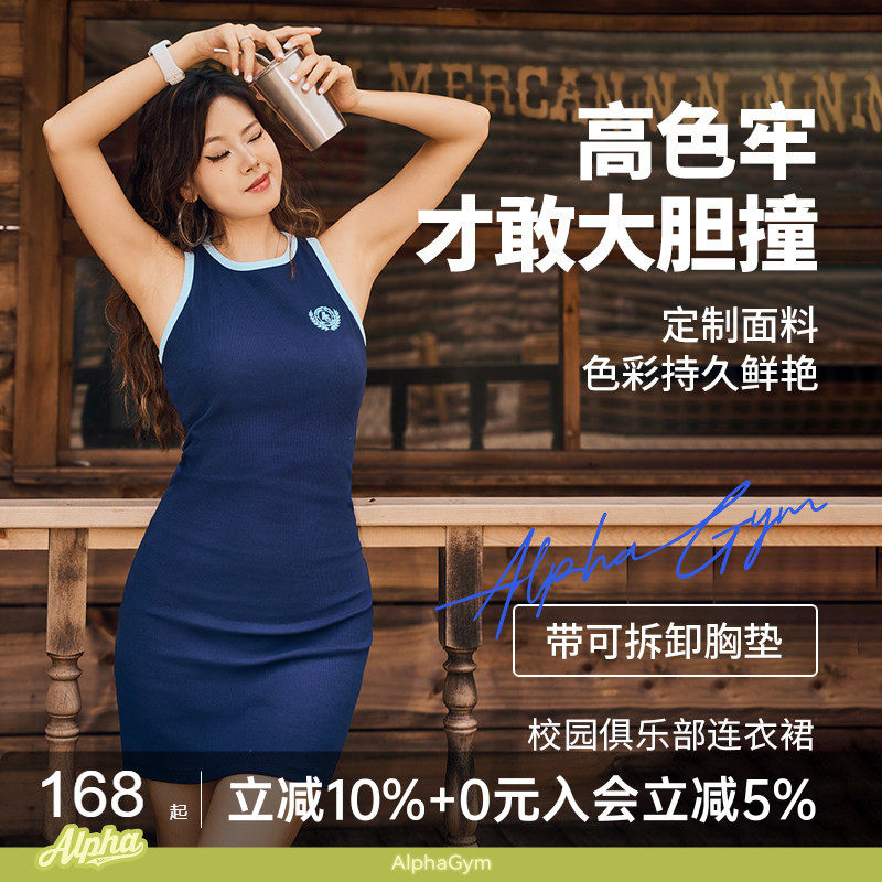 AlphaGym无袖连衣裙撞色修身带胸垫圆领美式学院风复古运动包臀裙