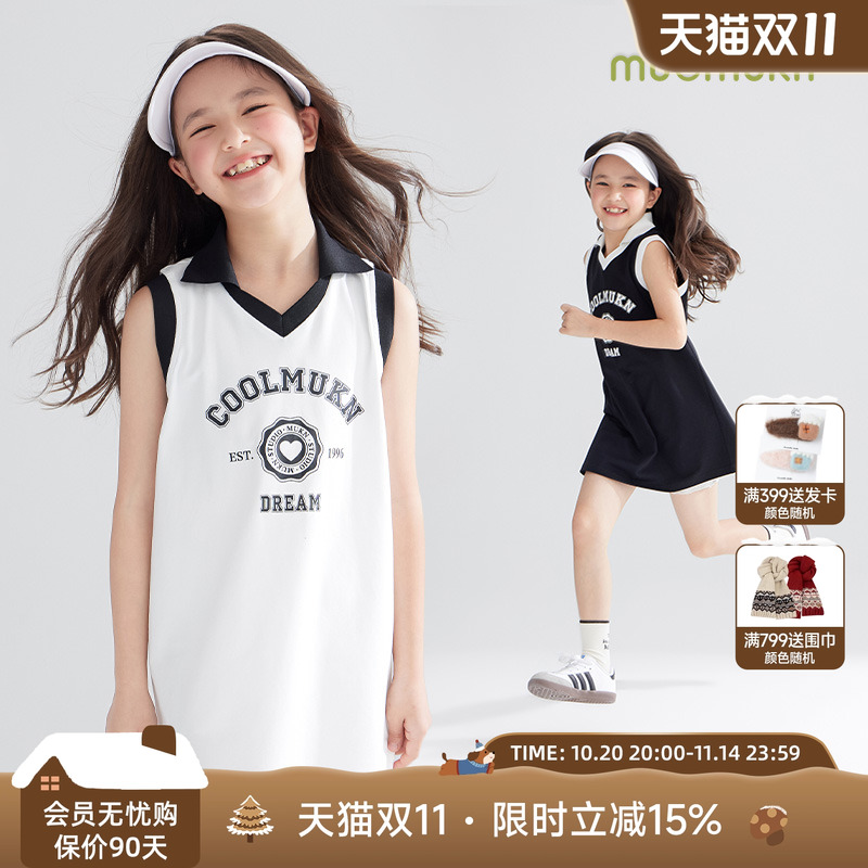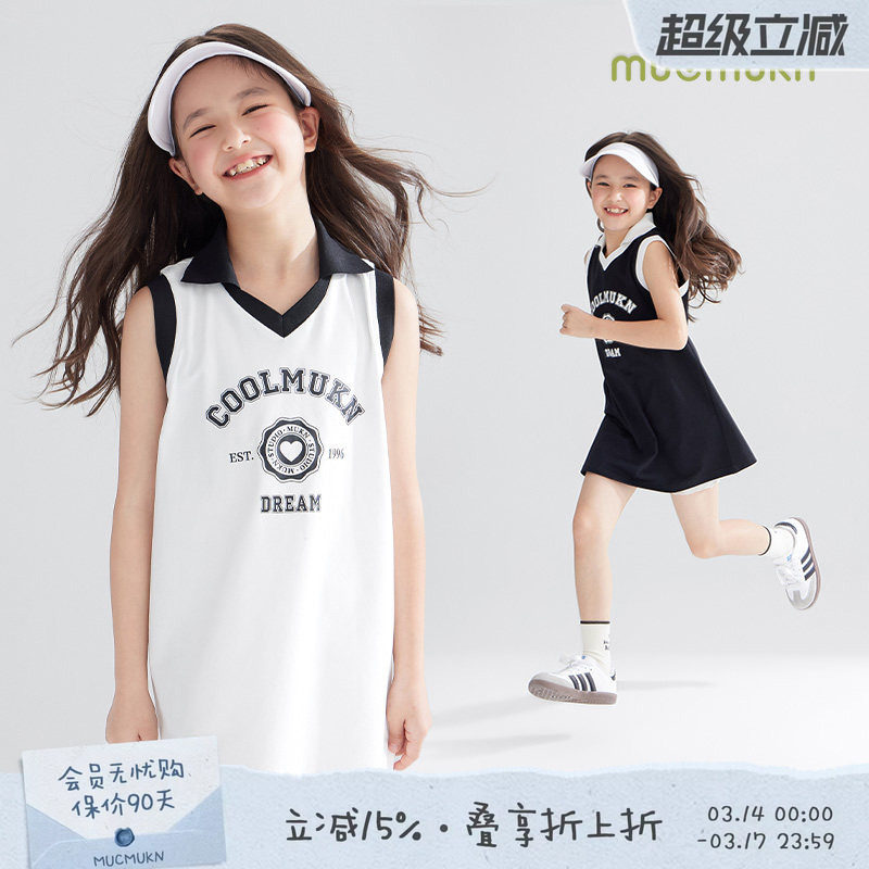 【冰感抑菌】复古轻运动女童夏季无袖连衣裙亲肤透气儿童学院裙子