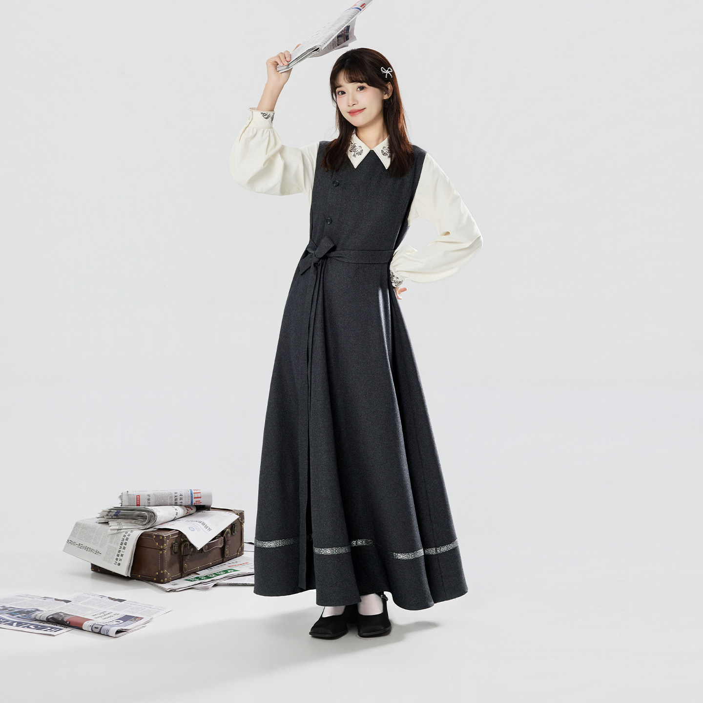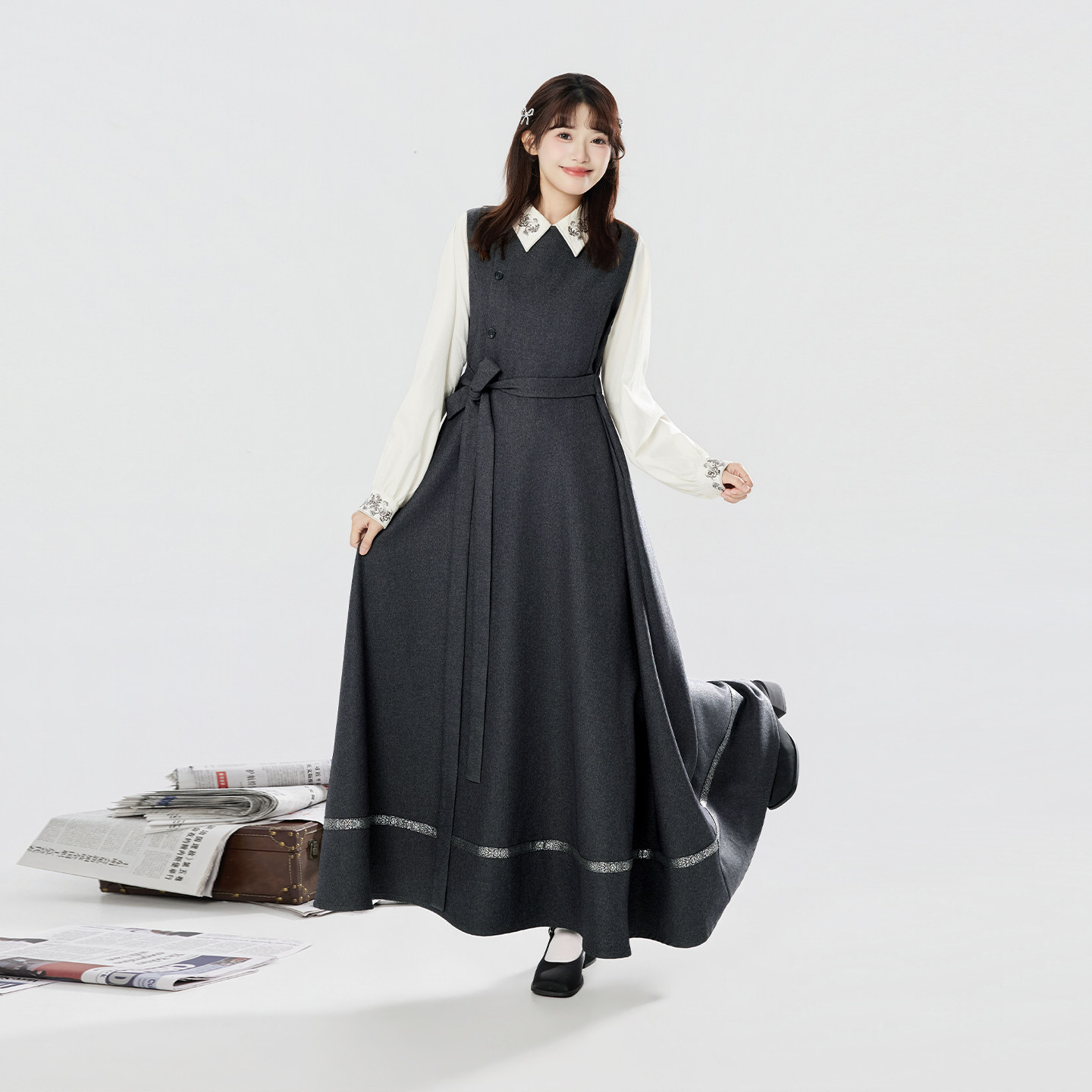 织造司[染雾]新中式学院风刺绣长袖衬衫上衣无袖连衣裙女气质款裙