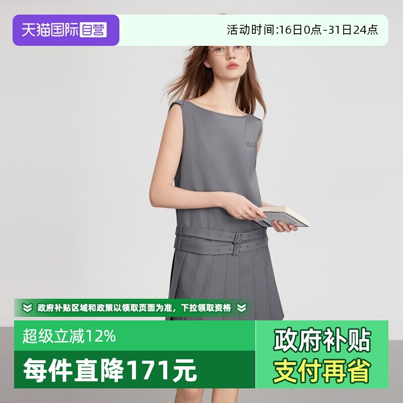 【自营】ELLE格雷系学院风连衣裙女2025夏新款无袖百褶背心短裙子