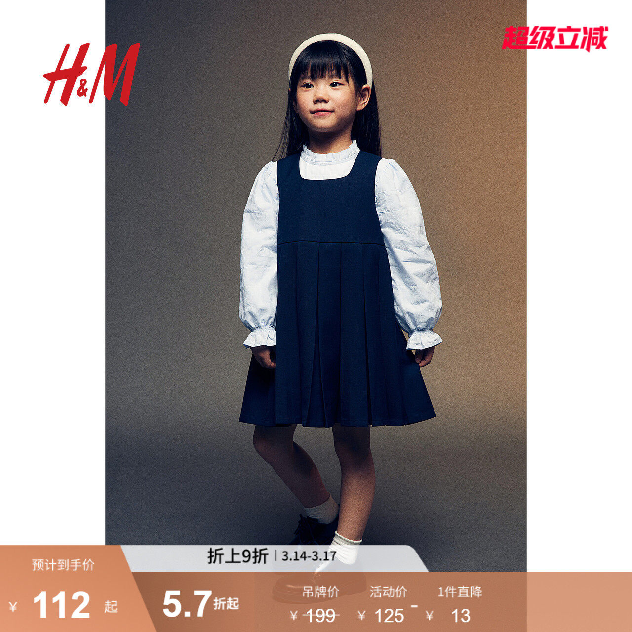 HM童装儿童女童连衣裙春季柔软褶裥学院风无袖连衣裙1257010