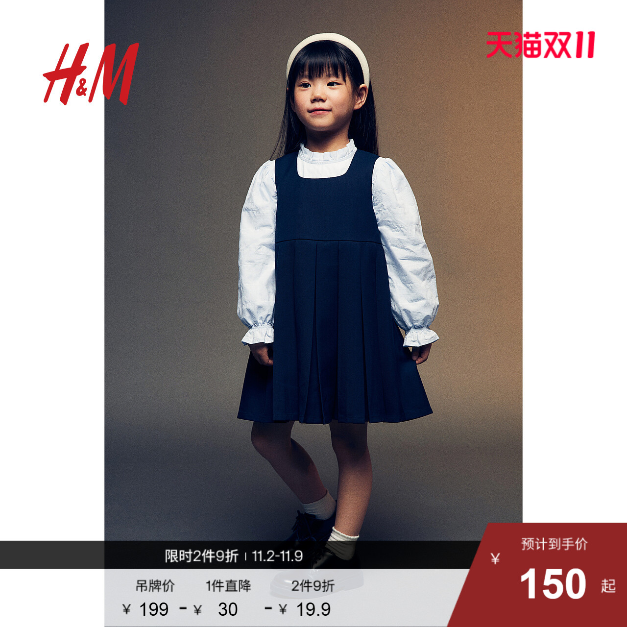 HM童装儿童女童连衣裙2025新款柔软褶裥学院风无袖连衣裙1257010