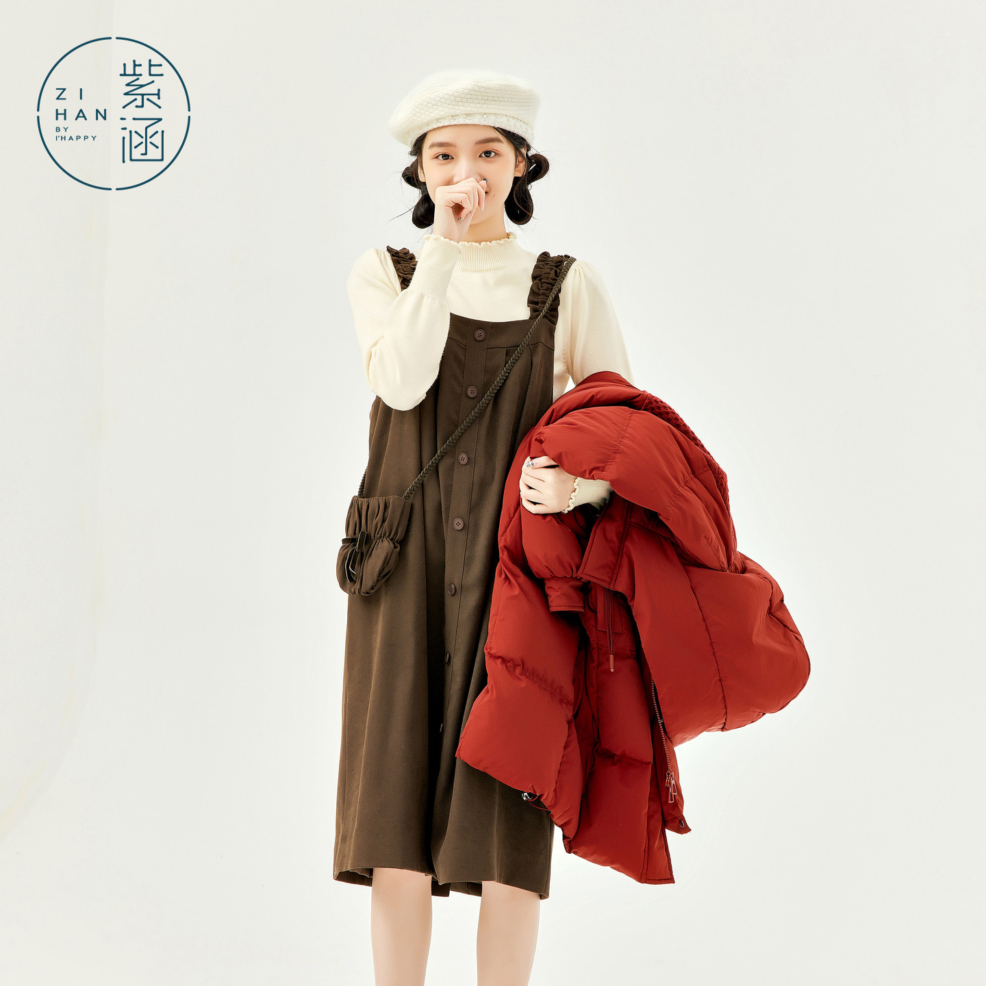 紫涵毛绒宽边吊带连衣裙女冬季新款森系学院风宽松无袖A字背带裙