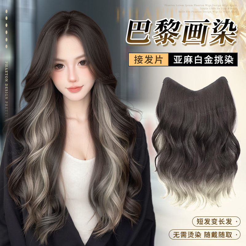 挑染假发片女一片式仿真人发巴黎画染长卷发增发量隐形无痕接发片