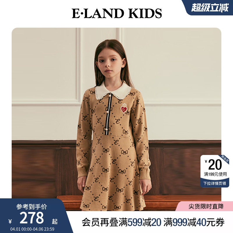 【千金系列】eland kids衣恋童装女童翻领连衣裙冬学院风