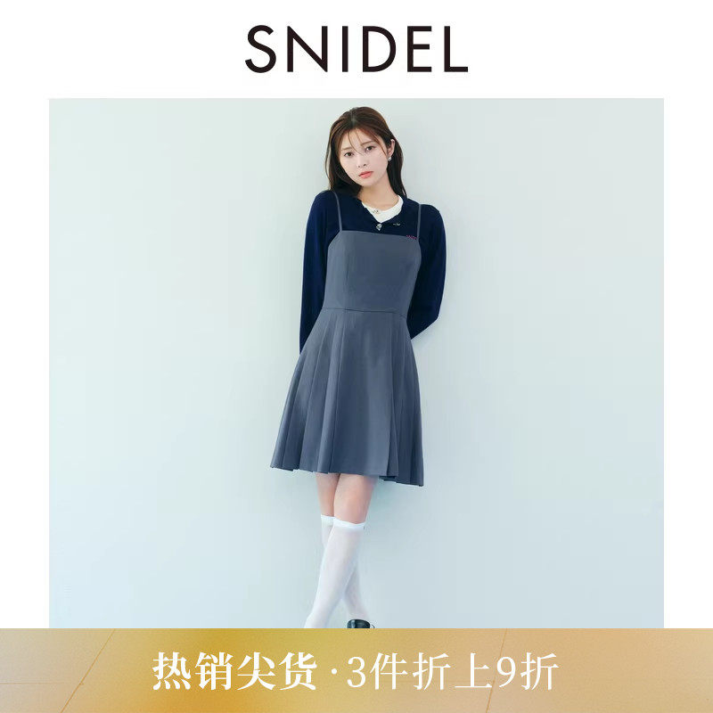SNIDEL2025秋冬新品时尚学院风马甲吊带百褶短裙连衣裙SWFO254182