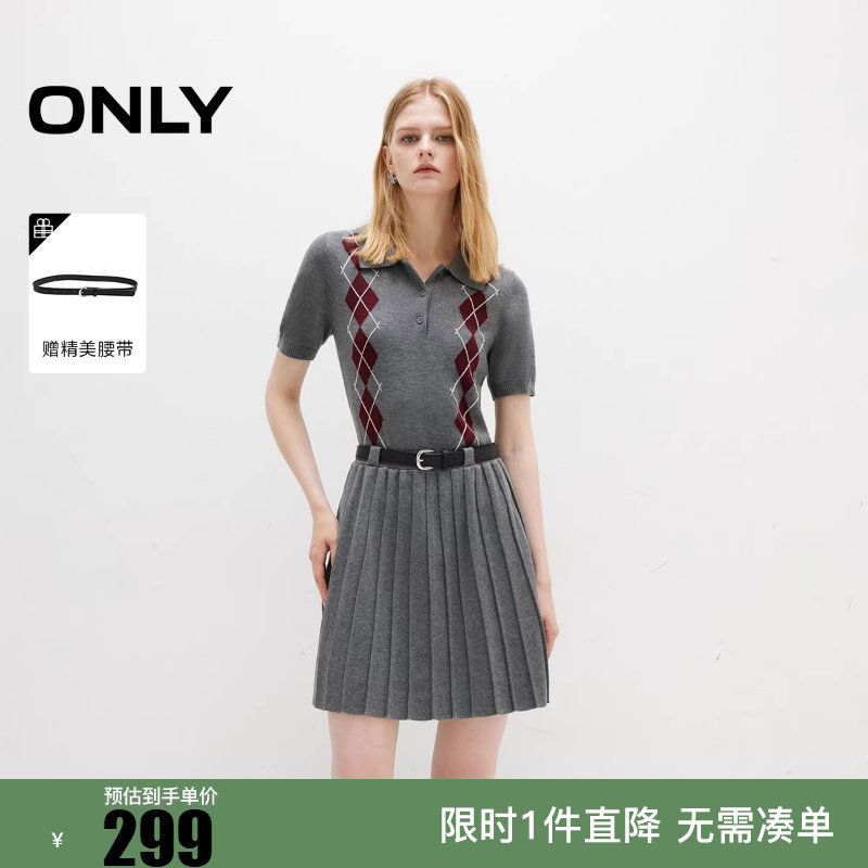 ONLY2025冬新款学院风假两件翻领菱格短裙连衣裙女|125346003
