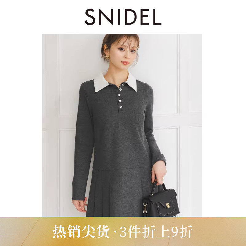 SNIDEL2025秋冬新品甜美学院风翻领长袖百褶裙摆连衣裙SWCO254195