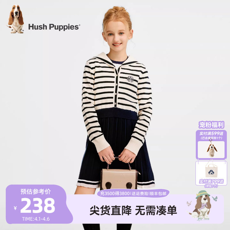 暇步士童装女童连衣裙25秋冬新款大童学院风海军领毛衣裙儿童裙子