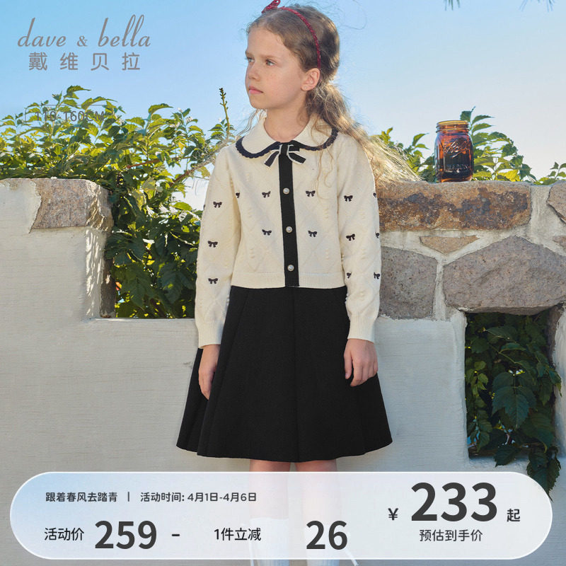 戴维贝拉女童连衣裙2026春秋新款儿童针织裙学院风裙子秋冬公主裙