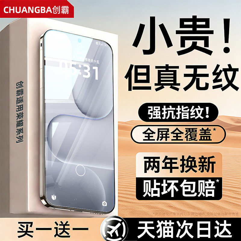 创霸适用华为荣耀500pro钢化膜400手机膜新款荣耀80gt秒贴仓x40gtx60x70i全屏高清winrt防指纹magic7/8的贴膜