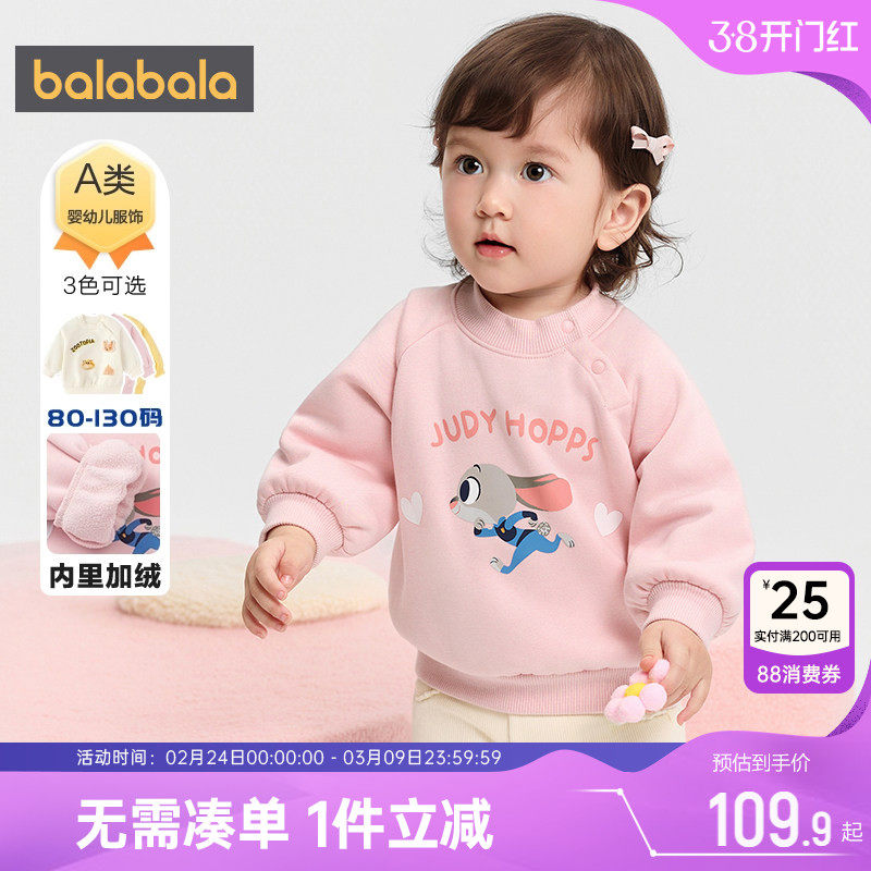 迪士尼IP巴拉巴拉宝宝加绒卫衣秋冬季新款童装男童女童套头打底衫