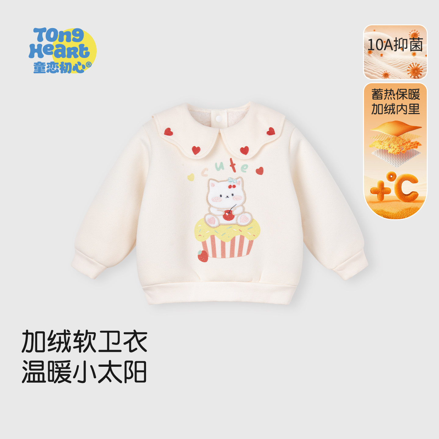 【暖绒绒】女宝宝加绒卫衣秋冬季儿童保暖甜美翻领上衣装婴儿衣服
