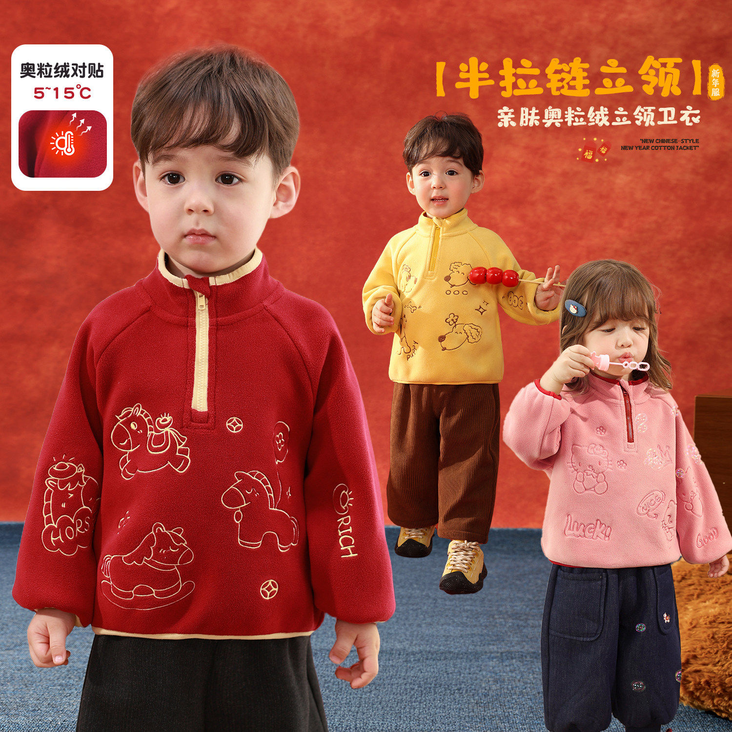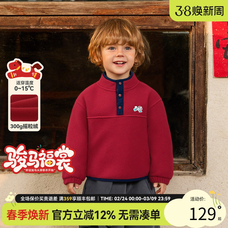 小O爸男婴童 宝宝加绒卫衣卡通红色冬季2026新款POLO婴儿新年衣服