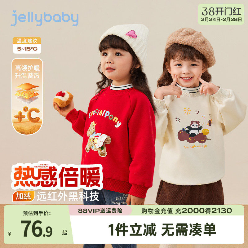 [保暖蓄热]女童卫衣秋冬女孩衣服儿童宝宝加绒男童新款红色上衣