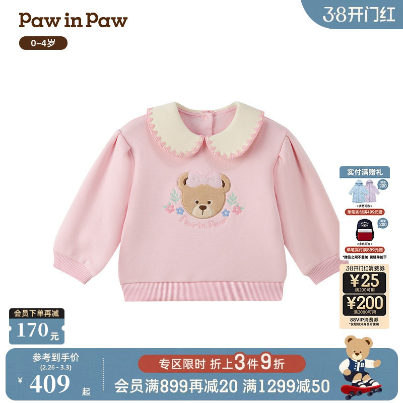 【商场同款】PawinPaw卡通小熊童装25年冬季新款女宝宝加绒卫衣