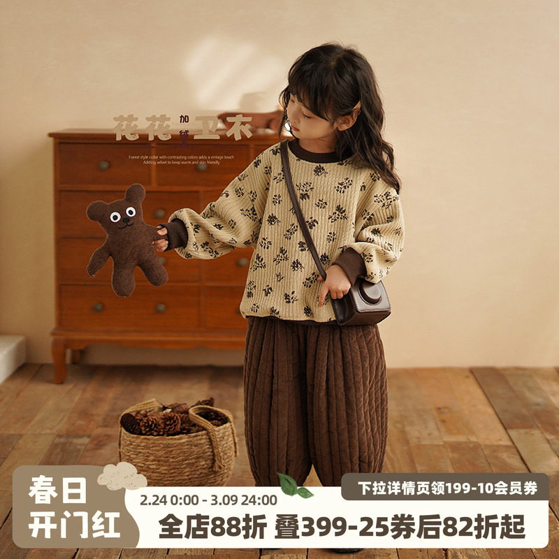 砚台家童装森系儿童宝宝加绒卫衣女童碎花纯棉上衣女孩2026冬新款