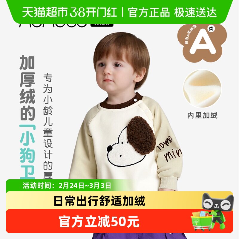 MOMOCO/玛米玛卡男宝宝加绒卫衣2025冬季新款婴幼儿可爱保暖上衣