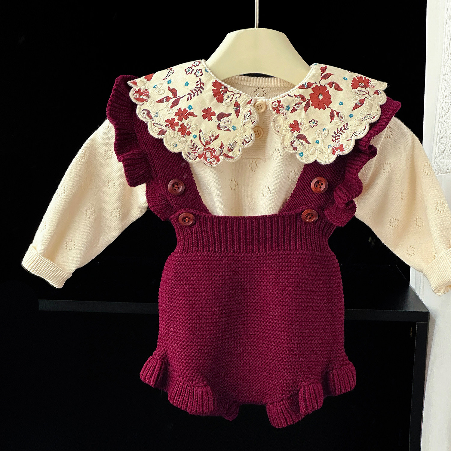 女宝宝连体衣满月百天套装酒红色喜庆新生婴儿公主洋气马年过年服