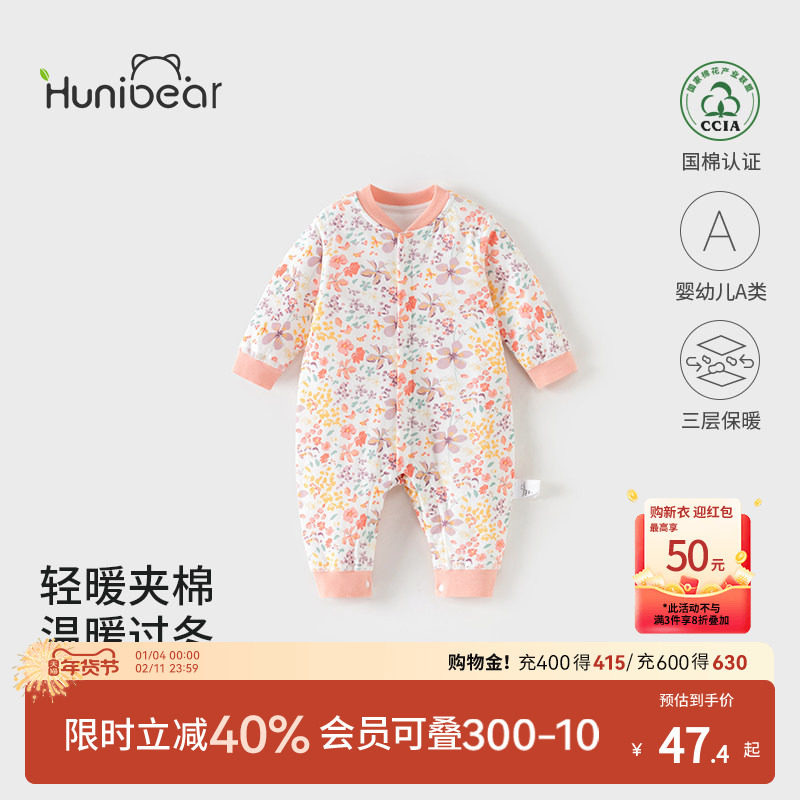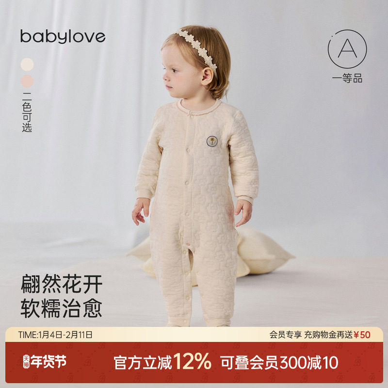 babylove女宝宝连体衣秋冬季薄夹棉保暖哈衣纯棉花朵洋气婴儿衣服
