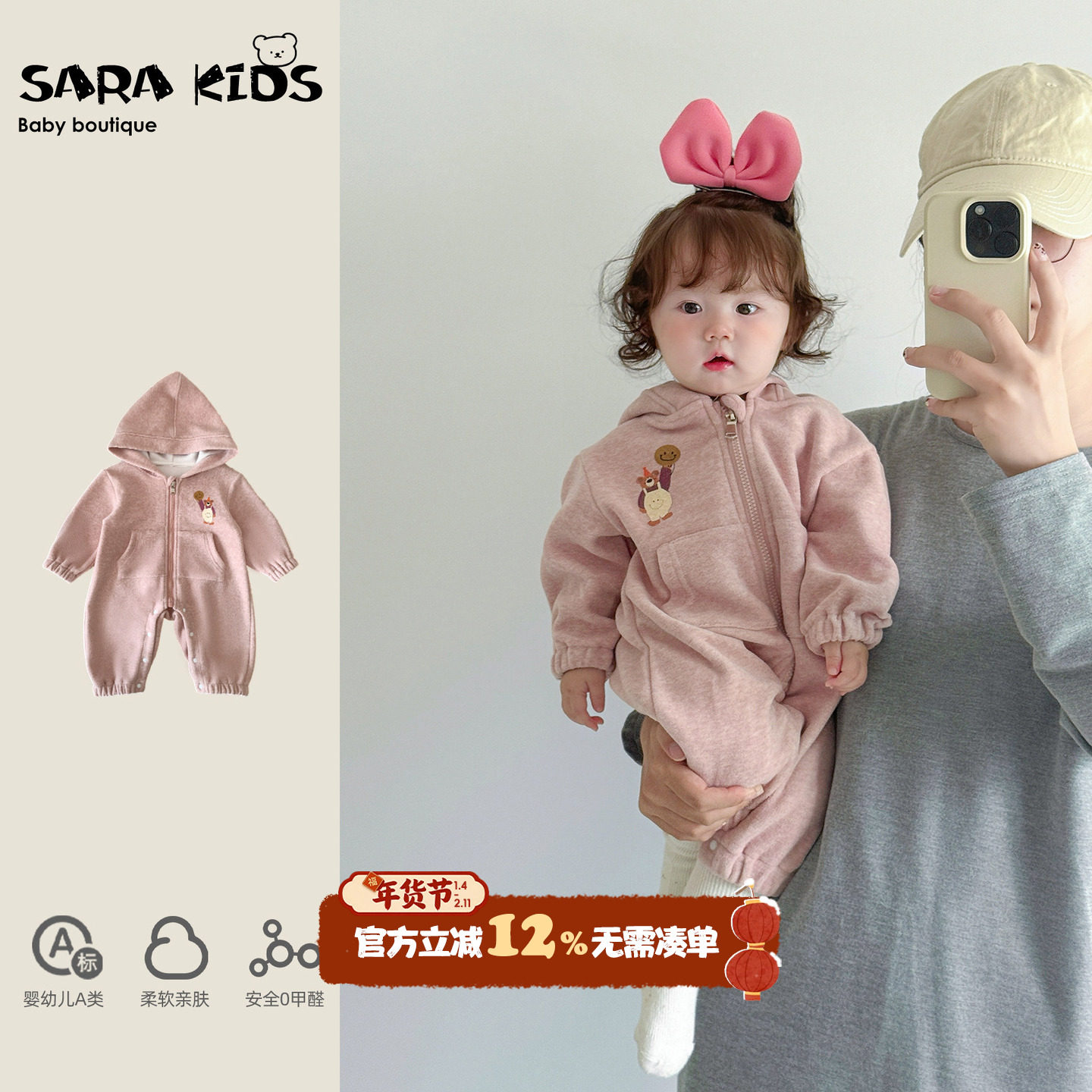 戴维贝拉女宝宝冬装连体衣保暖新款男宝牛奶绒哈衣婴儿加厚爬爬服