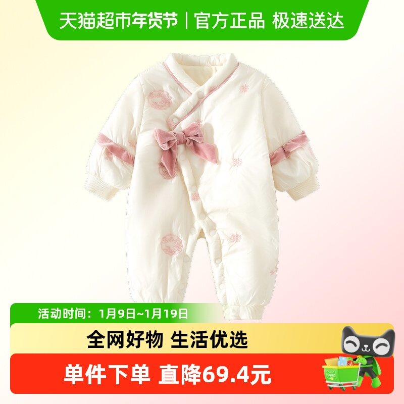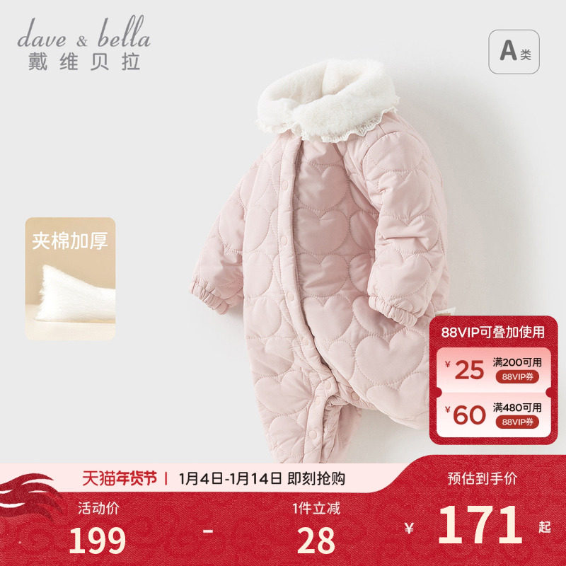 戴维贝拉女宝宝连体衣新生儿夹棉哈衣2026冬装新款婴儿A类爬服