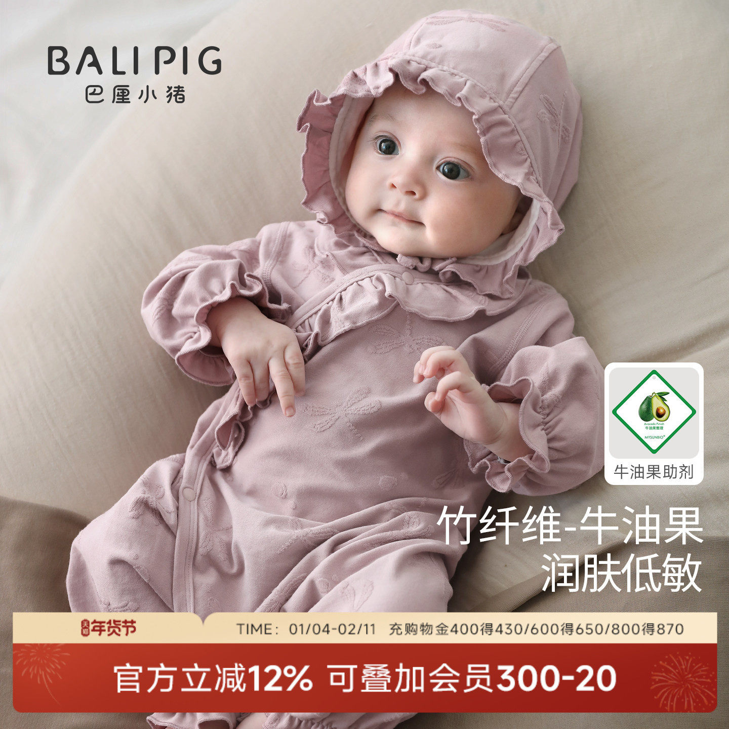 【牛油果竹纤维】女宝宝连体衣春秋初生儿哈衣四季新生儿婴儿衣服