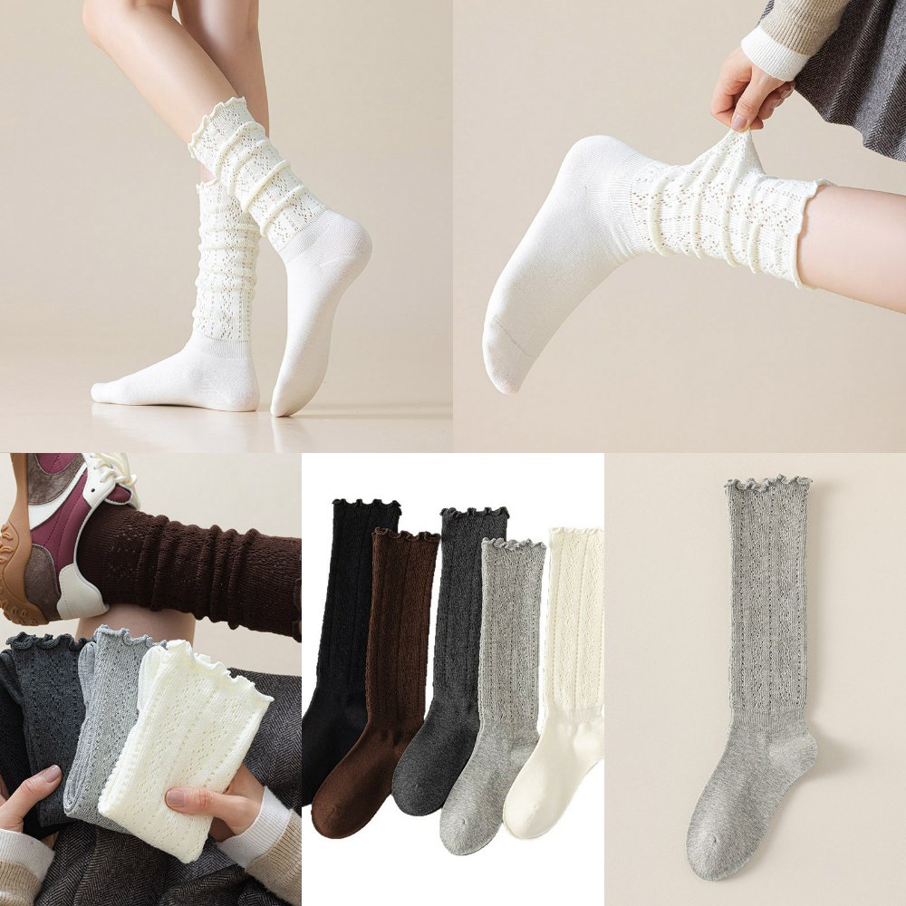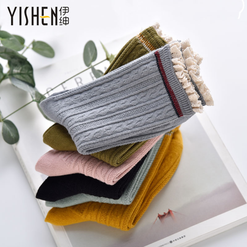 花边马丁靴搭配袜子女中筒袜ins潮秋冬季韩国长袜棉质女士堆堆袜
