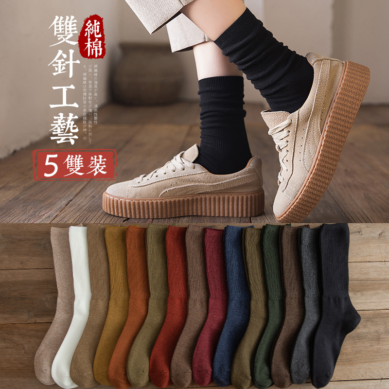 袜子女士秋冬纯棉堆堆袜韩国加厚中筒袜日系学院风复古双针百搭袜