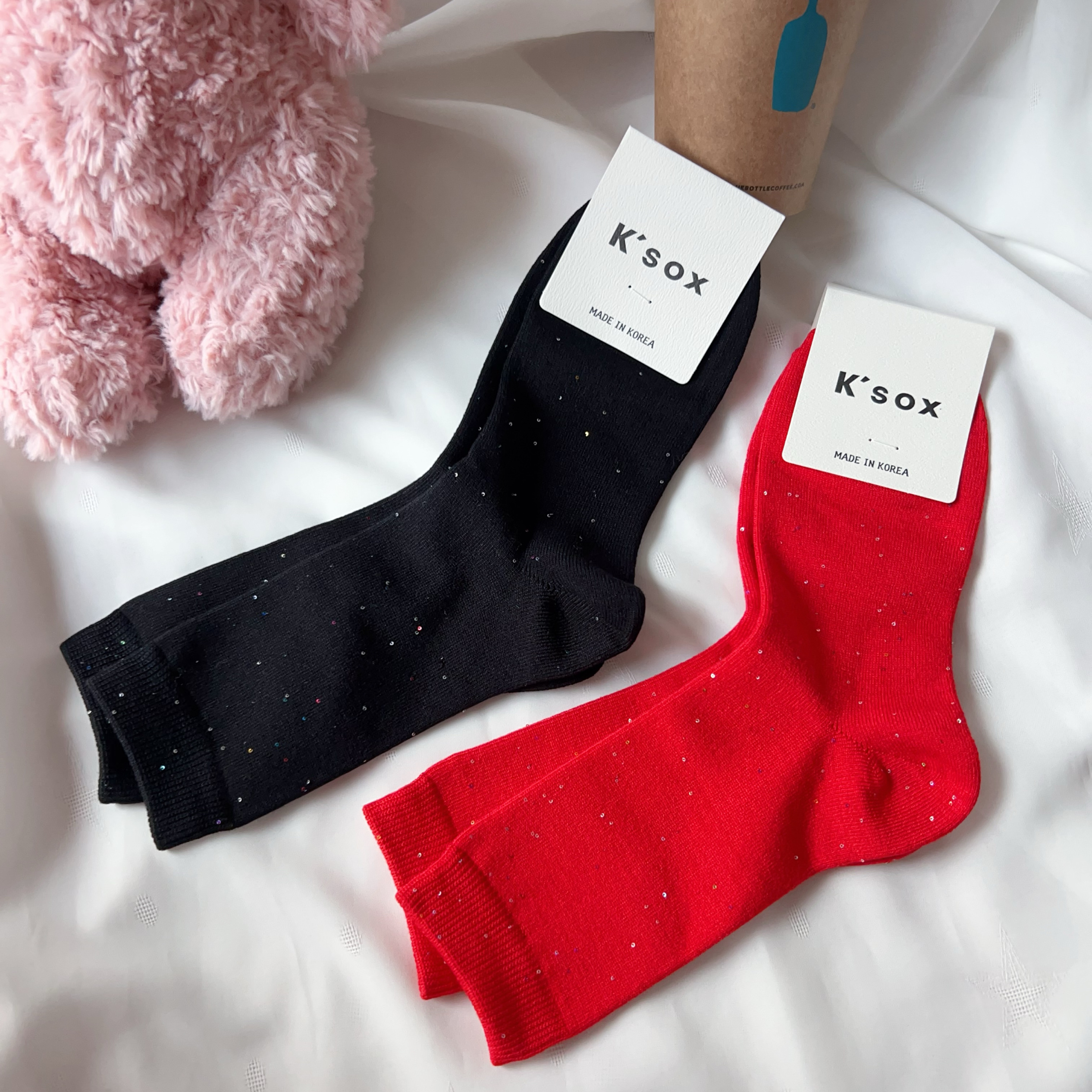 袜say 韩国银丝秋冬款女士中筒袜百搭时尚纯色无骨缝头舒适堆堆袜