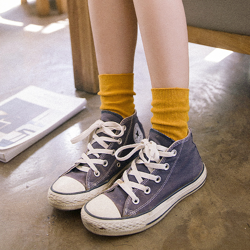 堆堆袜子女士纯棉韩国女袜防臭文艺中高筒袜日系无骨秋冬纯色长袜