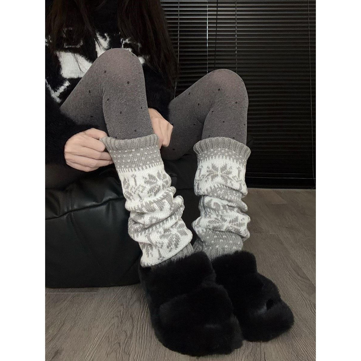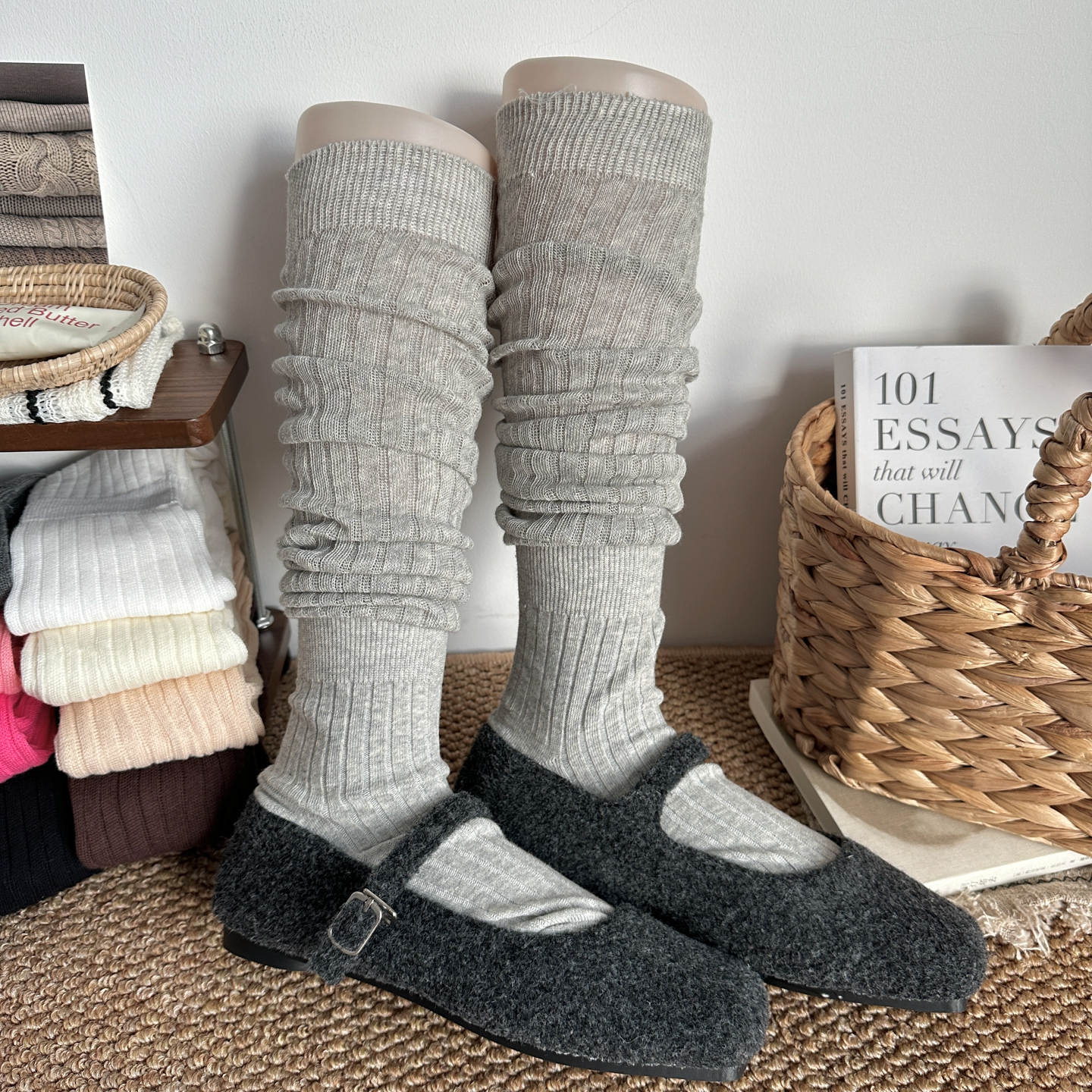 浅灰色秋冬堆堆袜叠穿韩国老板娘ins中筒棉质女士miu风褶皱过膝袜