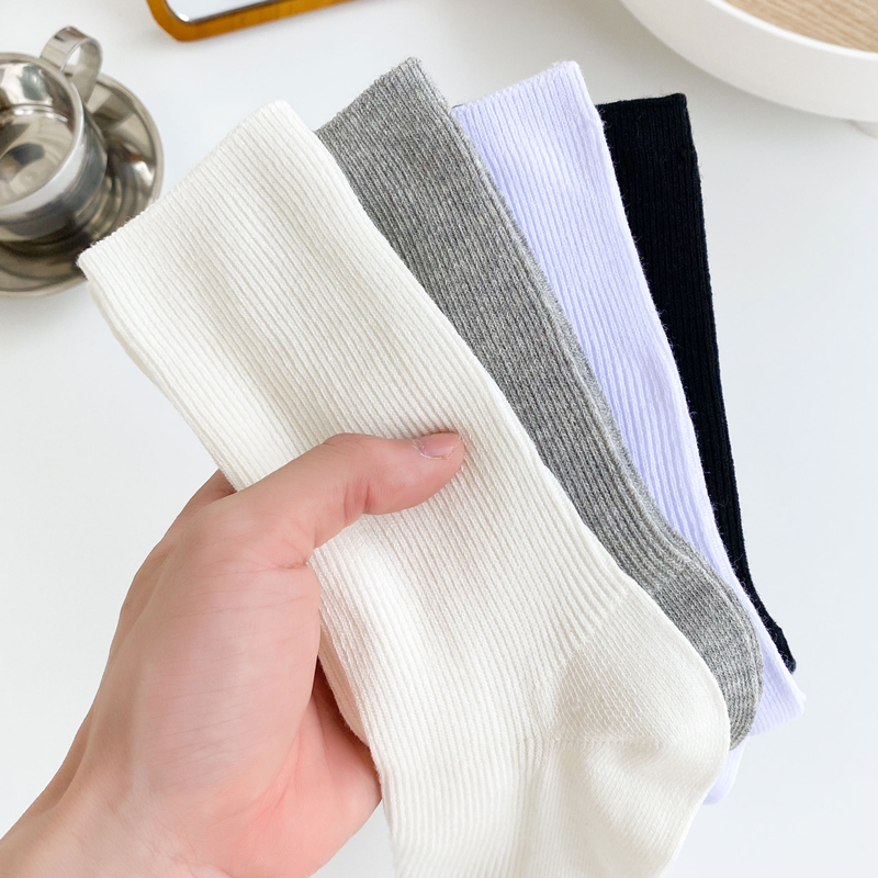 秒发!韩国进口ET*A女士2025春秋冬简约纯色螺纹堆堆袜中筒棉袜子