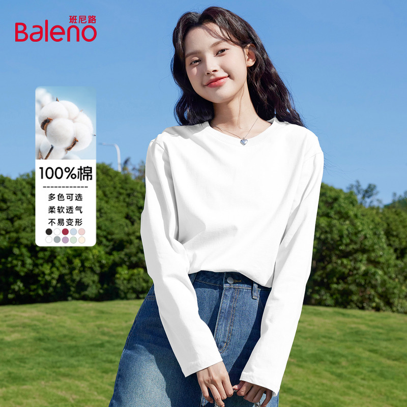 班尼路纯棉长袖t恤女士秋冬新款宽松休闲亲肤日常内搭上衣打底衫Q