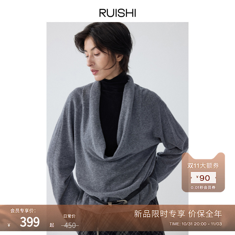 RUISHI芮时“摩登叠搭”优雅干练荡领羊毛毛衣显瘦宽松上衣女冬季