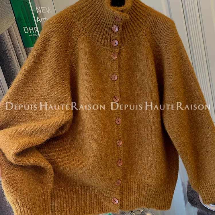 DHR 独特气质橘色排扣半高领针织衫毛衣打底衫宽松上衣女冬装新款