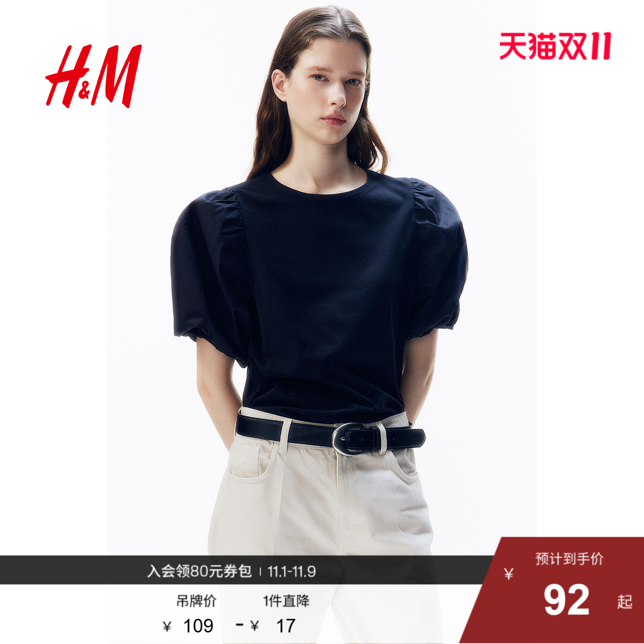 HM女装衬衫2025年秋季新款洋气宽松灯笼袖短袖通勤上衣1274436