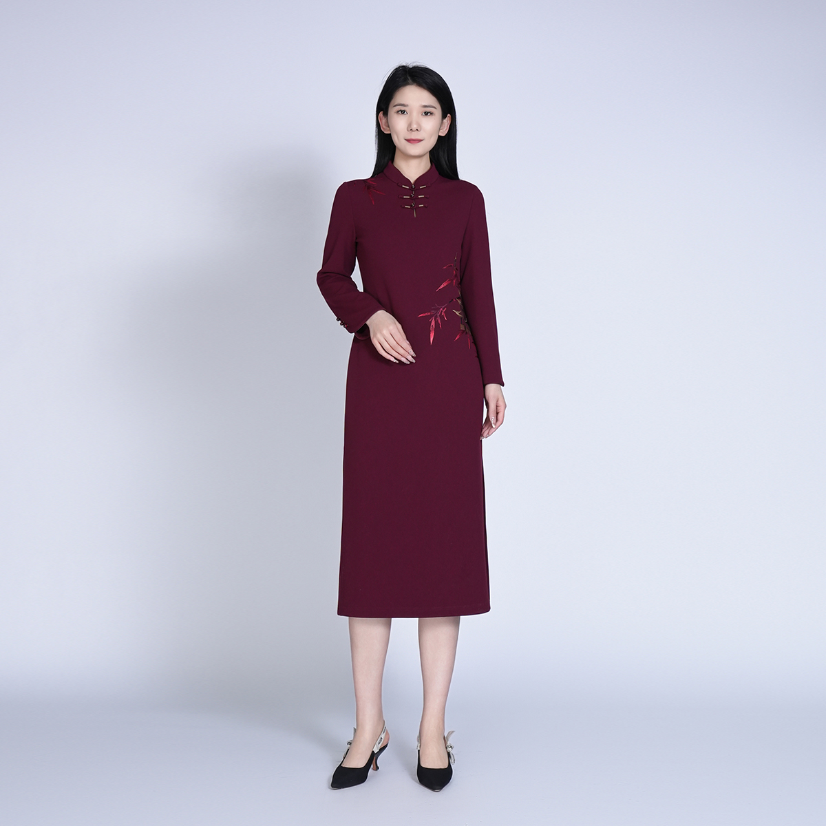 2025年新款秋冬季时尚V领拉链显瘦长袖赫本风通勤舒适气质连衣裙