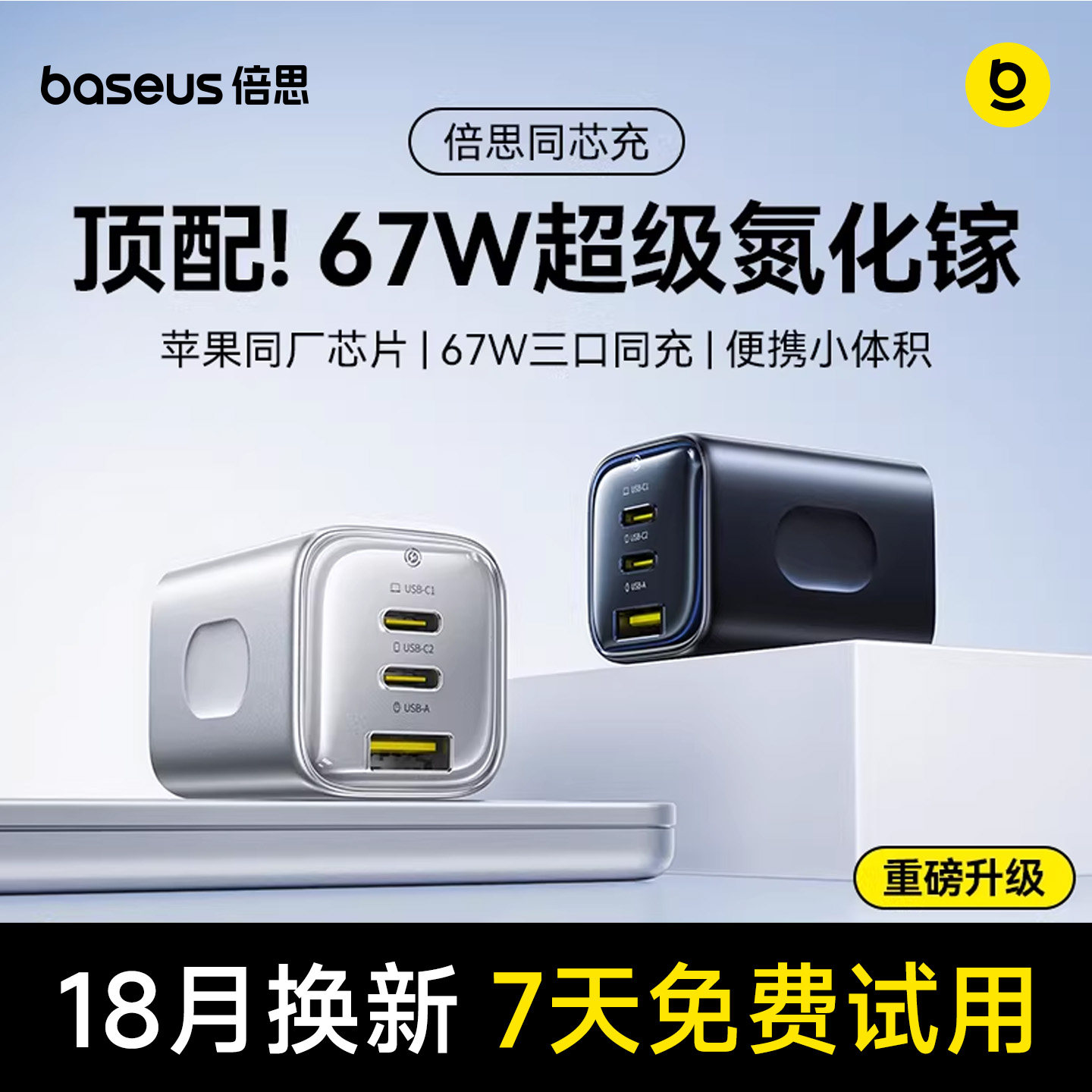 倍思同芯充67W适用iPhone17promax氮化镓100W充电器快充头Typec插头适用苹果安卓华为65W笔记本电脑macbook
