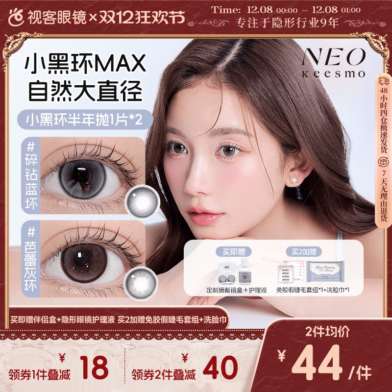 韩国NEO美瞳半年抛2片小黑环系列自然彩色隐形眼镜韩系小直径日常