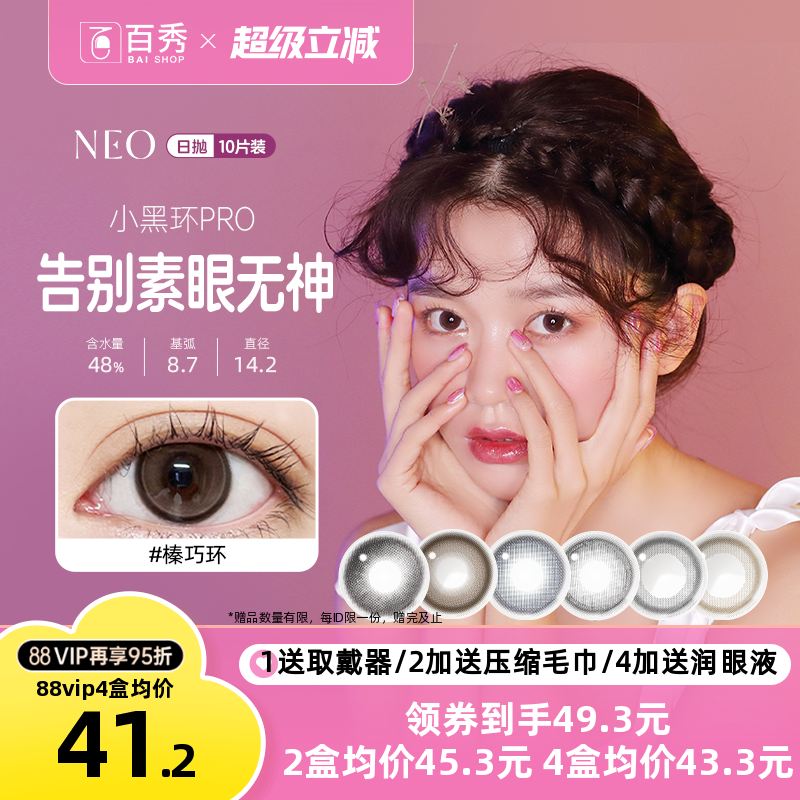 NEO美瞳日抛10片装隐形近视眼镜女小黑环自然混血可视眸官方期间