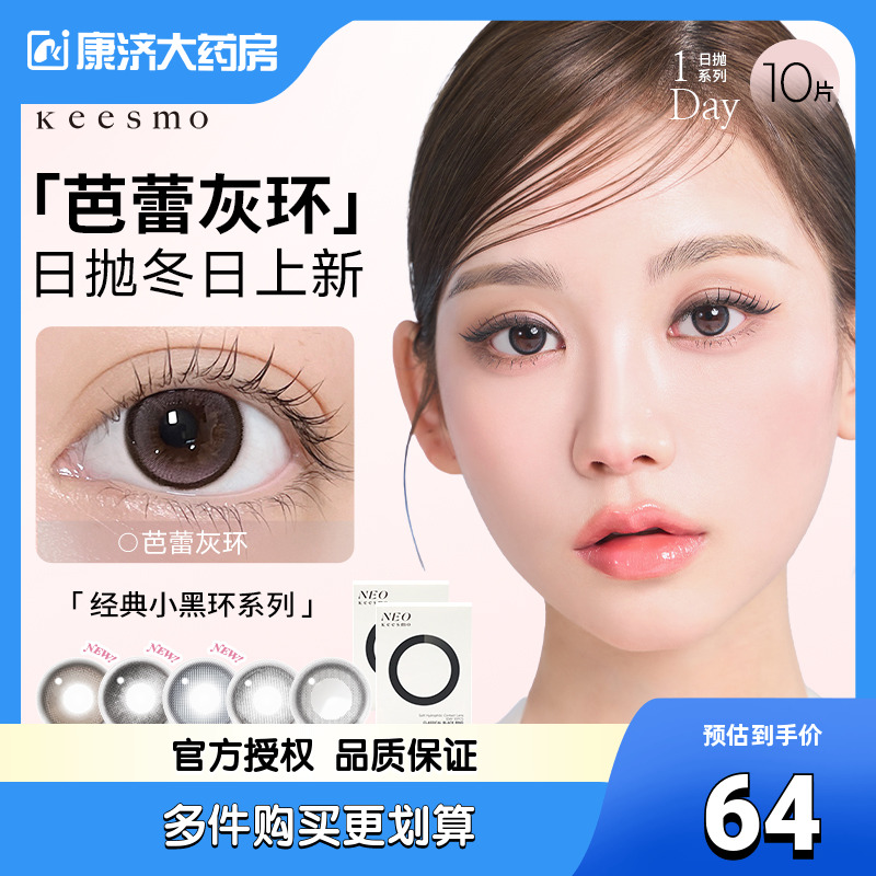 韩国NEO小黑环日抛美瞳清透自然水光感彩色隐形眼镜10片芭蕾灰环