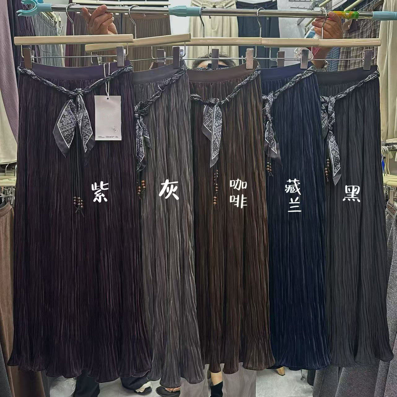 褶皱半身裙女百褶裙秋冬2025新款垂感丝绒长裙气质半裙高腰a字裙