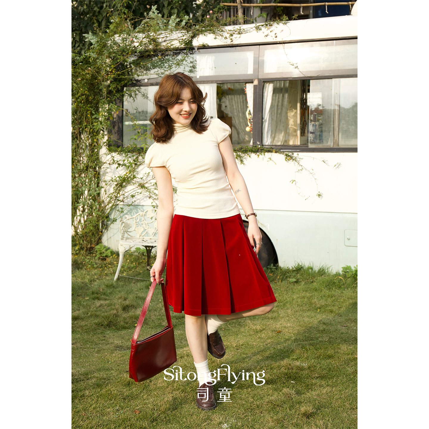 丝绒百褶裙半身裙女高腰小个子短裙大码蓬蓬裙设计感a字伞裙学生