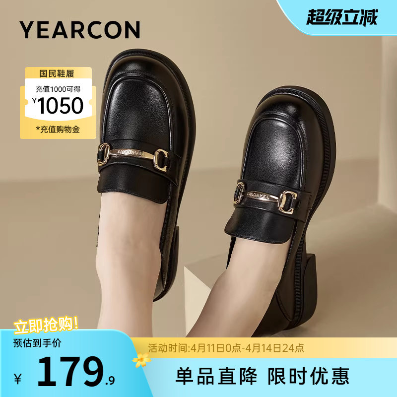 意尔康女鞋春季真皮单鞋软皮乐福鞋一脚蹬配裙子英伦风厚底小皮鞋