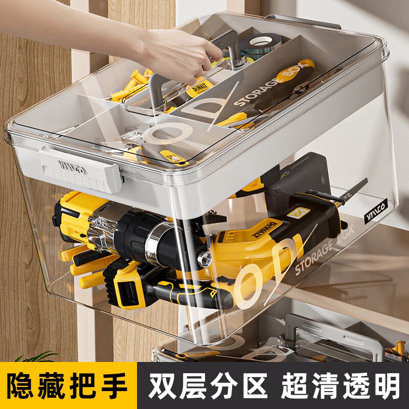 工具箱家用透明收纳盒多功能零件杂物五金整理盒双层大容量收纳箱