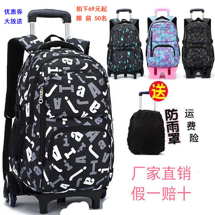 拉杆书包1-3-5年级爬楼梯6-12周岁小学生男孩女孩可拆卸减负防水