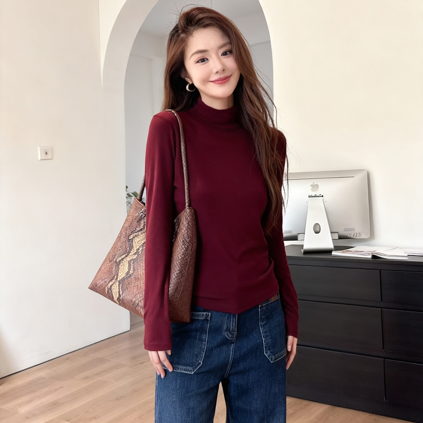 [小红书推荐]Outlets品牌折扣 卡恩希秋装莫代尔高领修身打底衫女